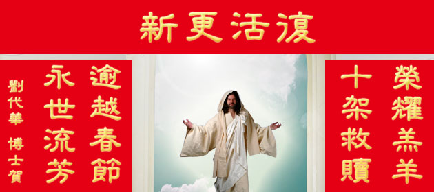 劉代華博士, 先知信息/代禱, 先知信息 中國春節的預言性 Posted on 2017-03-032017-03-23 by 管理者 當滅命天使要巡行擊殺仇敵,他看見在門楣和左右的門框上的血,就必逾越過那門救了那家。這就是獻給耶和華逾越節的祭。逾越節是神春季的節期,又稱為春節!祝福大家在春節開始,充滿耶穌復活更新的大能、力量與保守。希望你喜歡我的春聯。 從以色列看2017 逾越節21天禁食