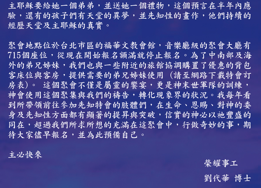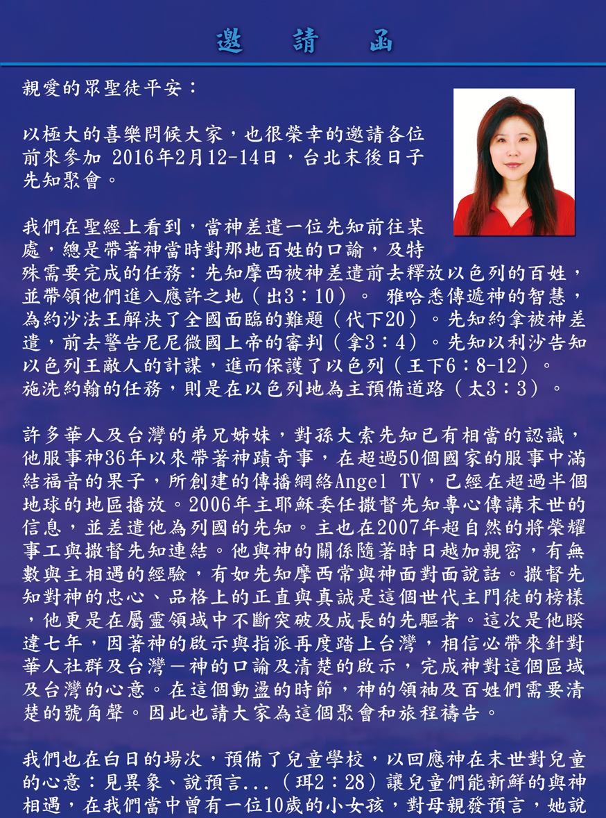 2016年2月台北先知特會撒督牧師對台灣的預言(一)