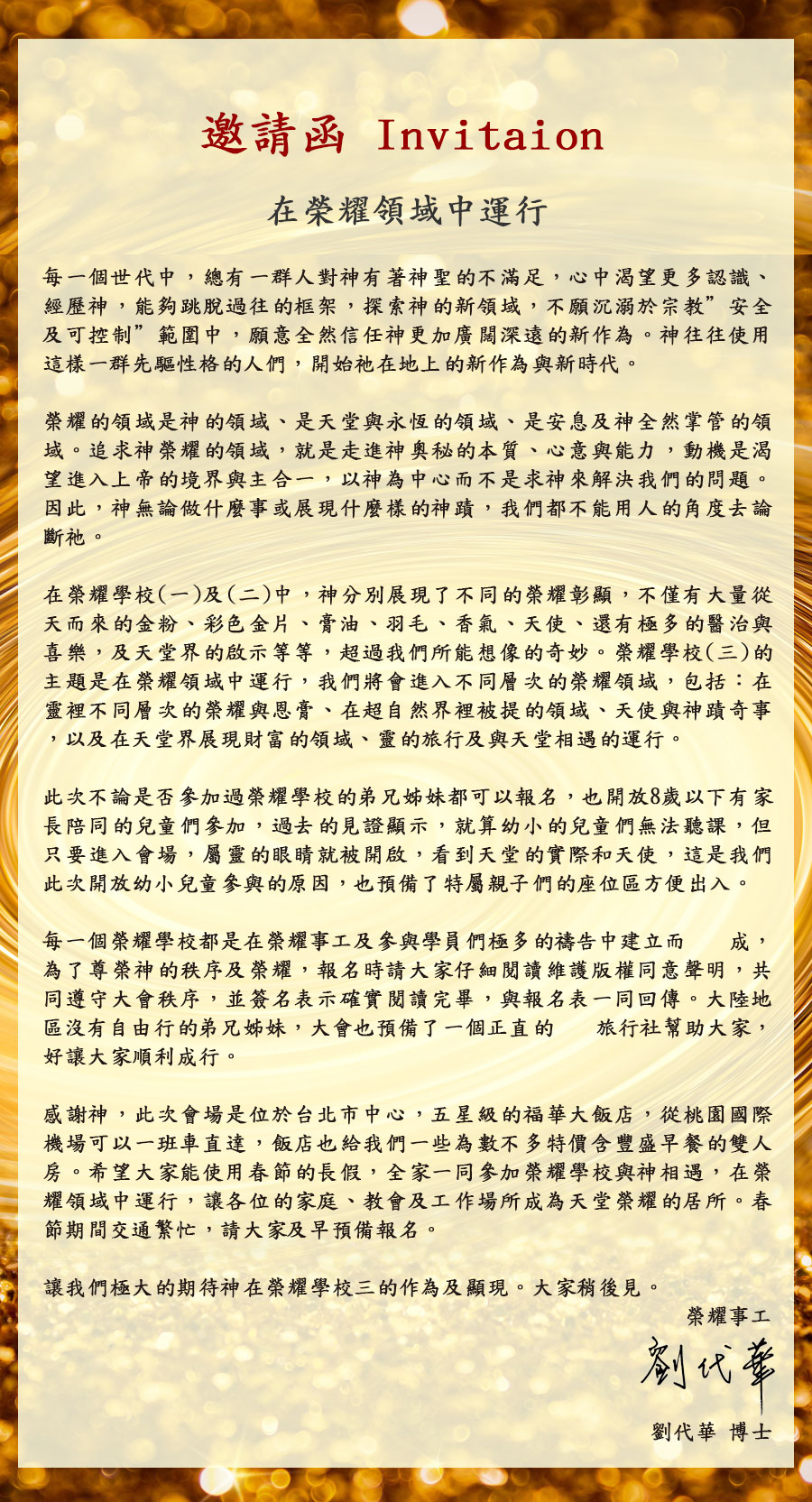 榮耀學校三 邀請及推薦函 Invitation & recommedation