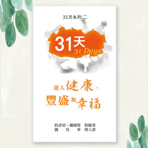 在健康、豐盛和幸福的31天這本書中,約書亞在神的話語中,找到深入淺出的關鍵教導,幫助讀者們能接受到上帝的分賜,以致於他們能解開並進入成功和幸福的領域。這些簡短有力、根據聖經的教導能夠永遠改變你的生命!